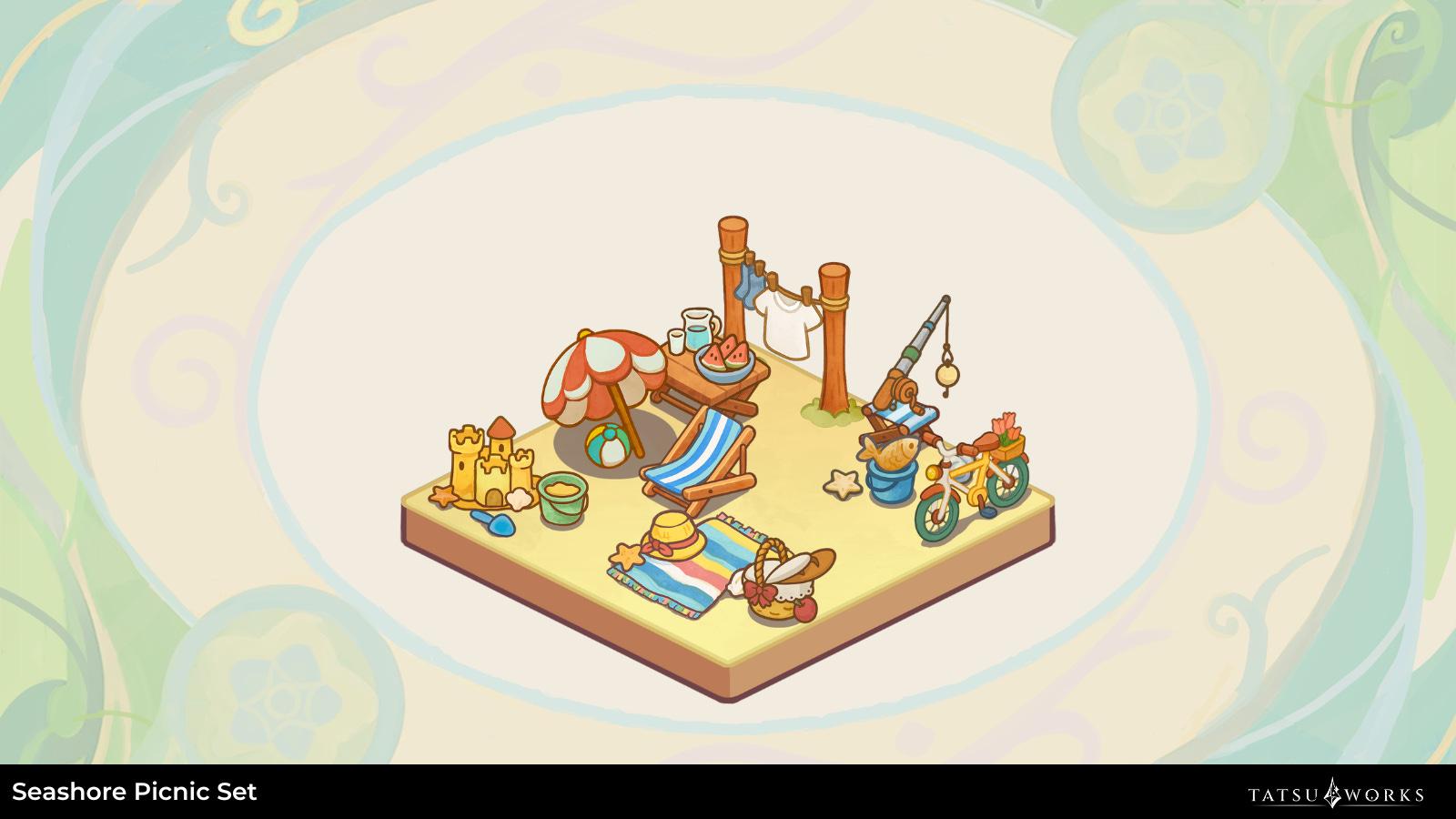 And now, recline by the coast of Ebrissa with the Seashore Picnic collection. Featuring a comfortable lounge, playful sandcastles, and seaside essentials, this set captures the calm and charm of a day at the beach right in your Roamstead. (Ps. I will definitely want the Seashore Bicycle to travel around the coast!)